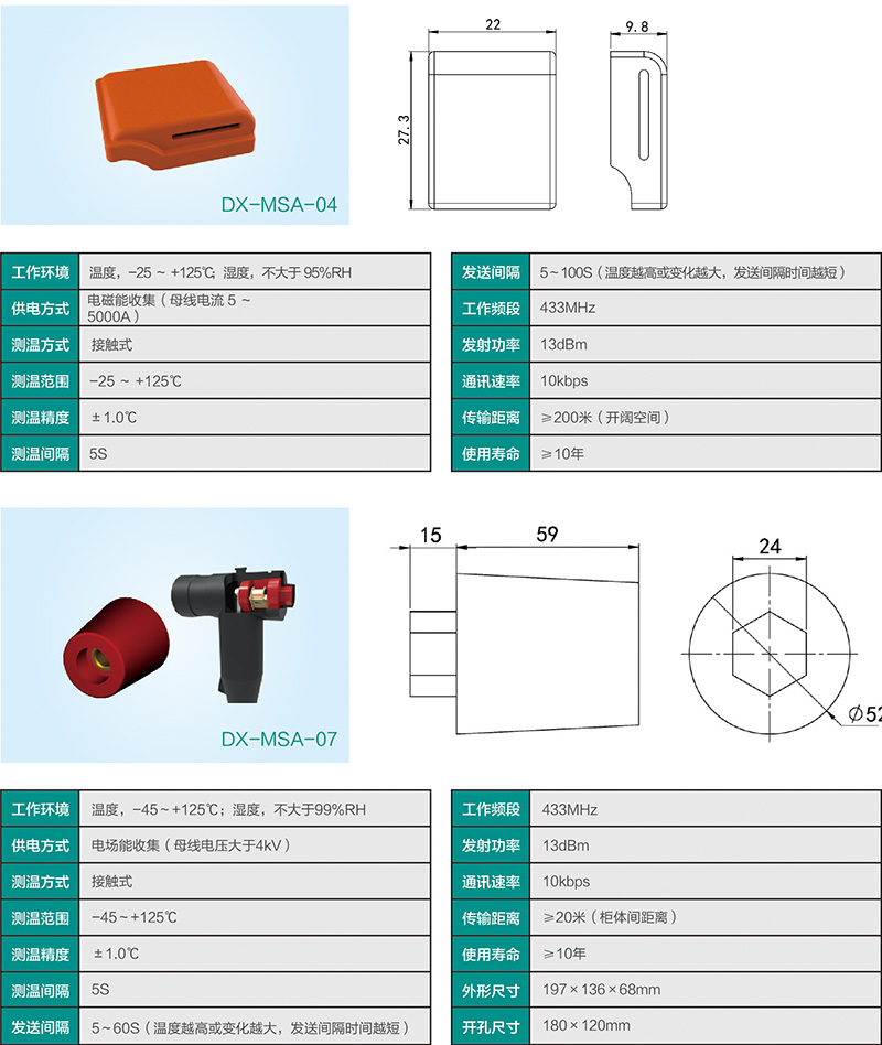 該產品采用低功耗設計、無線測溫等技術,具有隔離徹底、安裝方便、抗干擾能力強、工作可靠等特點,能很好的解決高電壓狀態下的溫度測量問題。