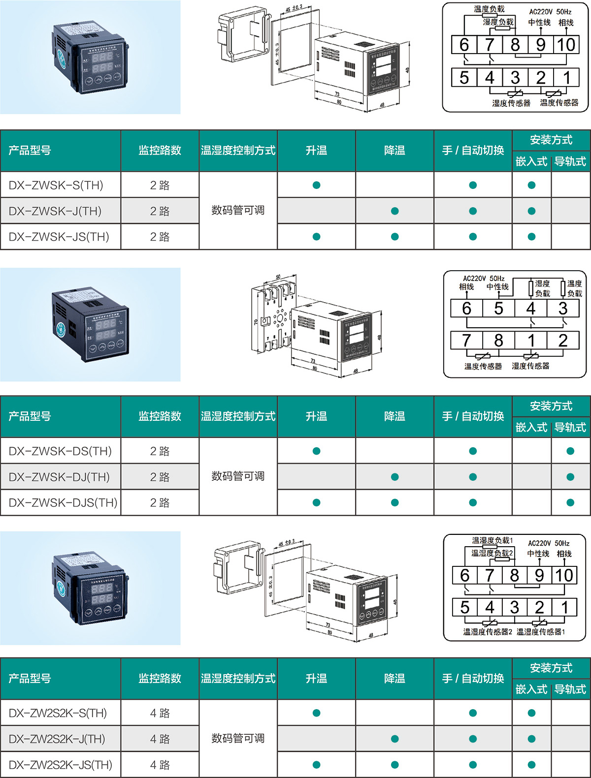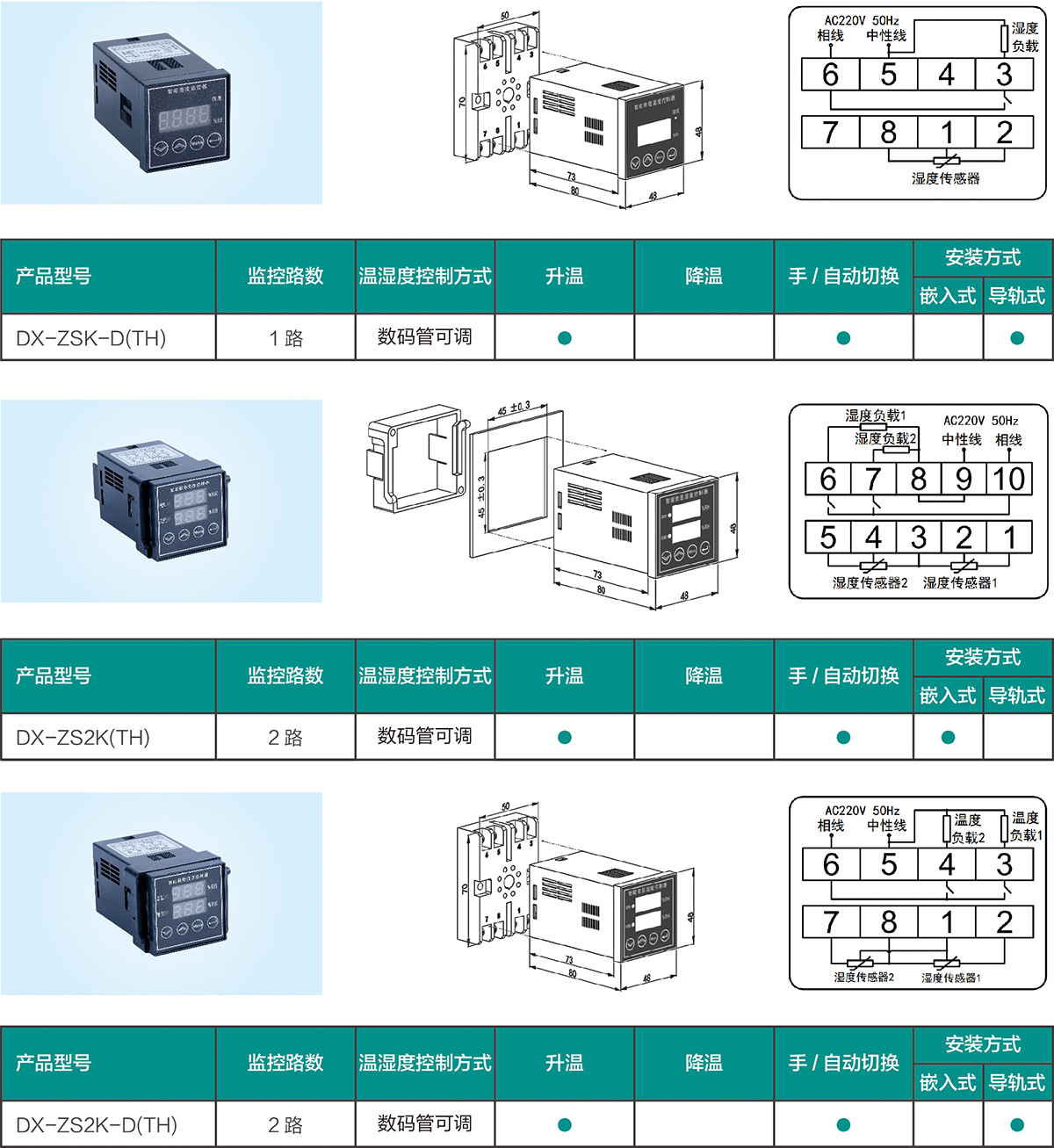智能型溫濕度控制器廣泛應用于高低壓電氣設備的控制柜(箱)內的環境進行自動監控,使控制柜(箱)內的溫度和濕度始終保持在設定的范圍內,能有效地防止零部件的生銹和電器元件銹蝕、短路等故障,保障電氣設備的安全正常運行。
